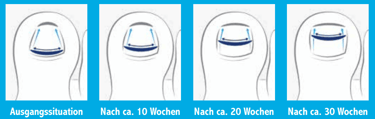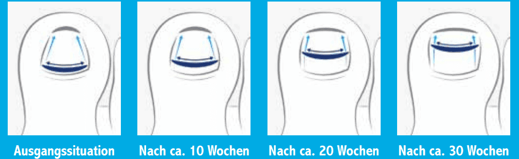 Das Prinzip des Onyfix Nagelkorrektur- und Reparatursystems besteht darin, eingerollte bzw. eingewachsene Zehennägel nach mehr oder weniger proximaler Fixierung der Onyfix Modellierspangen mit Hilfe eines ausgehärteten Komposites spannungs- und schmerzfrei durch normales Wachstum in eine natürliche Nagelform zu führen. Darüber hinaus kann Onyfix auch zur Reparatur beschädigter, brüchiger oder teilentfernter Nägel eingesetzt werden. Das System unterstützt die Regeneration, stabilisiert die Nagelplatte und schützt empfindliche Nagelbereiche während des Wachstums.